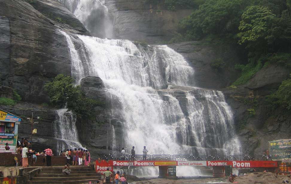 Kuttralam or Courtallam falls, Spa of South India, is situated (160km away from Madurai Airport) at a mean elevation of 160 m (520 ft) on the Western Ghats . Many seasonal and few perennial rivers such as the Chittar River, the Manimuthar River, the Pachaiyar Riverand the Thamirabarani River originate in this region. The numerous waterfalls and cascades along with the ubiquitous health resorts in the area have earned it the title the Spa of South India. It is considered as a 'medical spa' on account of the medical smell in the waters. There are a total of nine falls of which Peraruvi, Aintharuvi and Puli Aruvi being the most prominent. The falls is the most prominent tourist destination in the region and usually frequented by devotees of the Papanasanathar Temple and Sabarimala. The season starts with the South West monsoon from July to September. The Tamil Nadu Tourism Development Corporation (TTDC) has a boat house that operates boating during season.