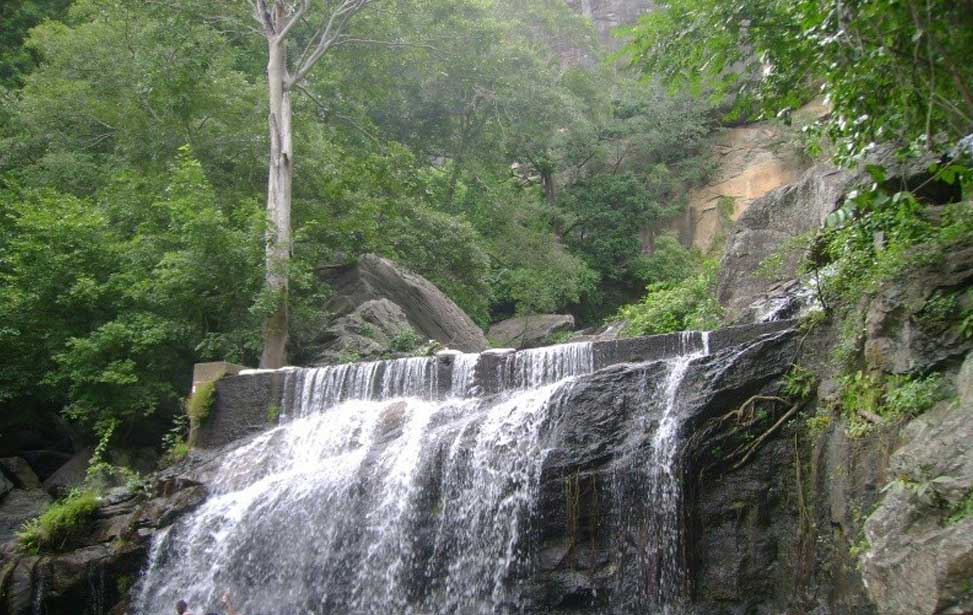 Kutladampatti Falls is a waterfall located in the village of Kutladampatti near Vadipatti in Madurai district about 30 km (19 mi) northwest of Madurai, Tamil Nadu, India. The waterfall is in a reserve forest managed by the Tamil Nadu Forest Department. The water falls from a height of about 27 metres (89 ft). Ashram is another place of attraction, located in the downhill. The Ashram is surrounded by mango farms and is a home for peacocks. The ashram also has various shrines and is a very good place for meditation and spiritual relief.