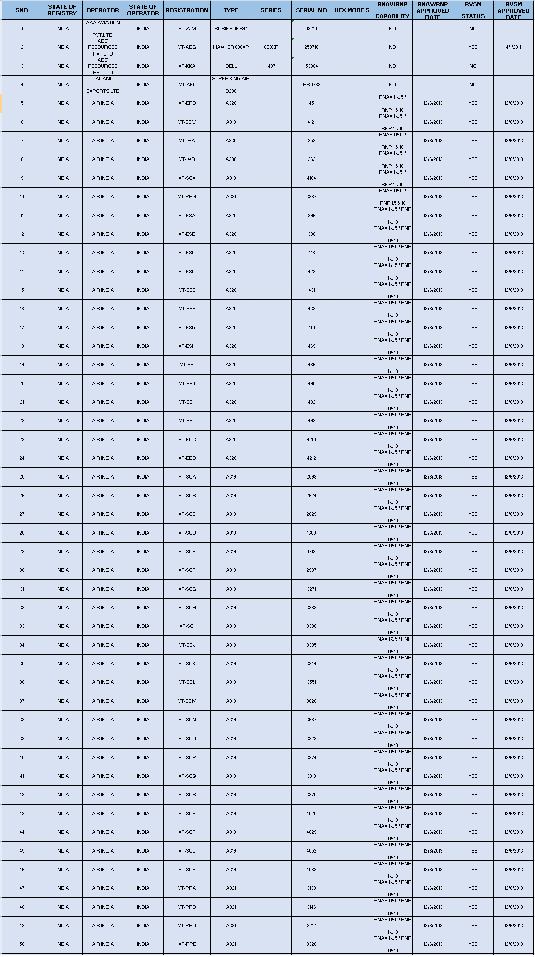 Data Base of PBN Approvals