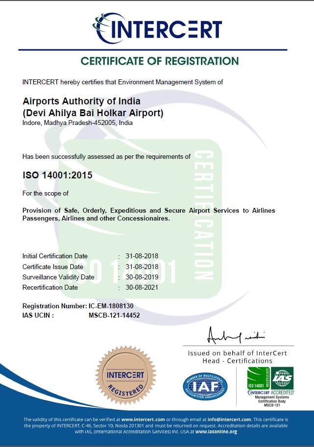 4 World Book of Records: The World Book of Records, UK has bestowed Worlds Standardization Certification to Devi Ahilya Bai Holkar Airport Indore for the achievement of ACI Award 2017 on 09th April 2018. -