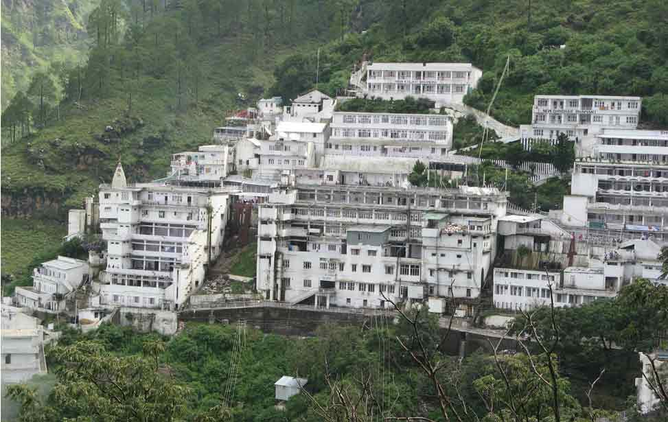 Vaishno Devi, also known as Mata Rani, Trikuta and Vaishnavi, is a manifestation of the Hindu Mother Goddess Mahalakshmi. The words "maa" and "mata" are commonly used in India for "mother", and thus are often used in connection with Vaishno Devi. Vaishno Devi Mandir is a Hindu temple dedicated to the Hindu Goddess, located in Katra at the Trikuta Mountains within the Indian state of Jammu and Kashmir. The Temple or Bhawan is 13.5 km from Katra and various modes of transportation are available from katra to Bhawan, including Ponies, Electric vehicles and paalkhis operated by 2 or 4 persons. Helicopter services are also available up to Sanjichhat, which is 9.5 km from Katra. Bhairon temple is another 1.5 km from Bhawan.