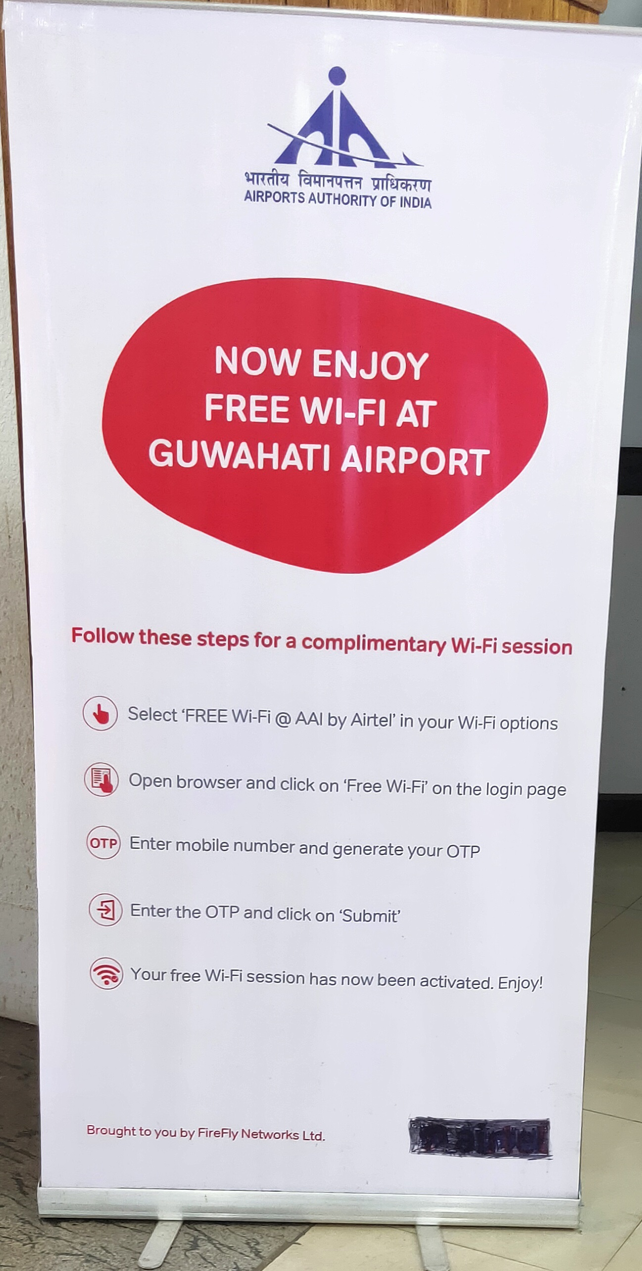 WiFi service is available throughout the terminal building. To access the internet, you have to connect wifi to your mobile and login with your mobile number and the OTP is your password.
