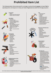 The following items that are banned for carriage on person/hand baggage on board flights operating from civil airports in India; and Indian Registered aircrafts from foreign airports :