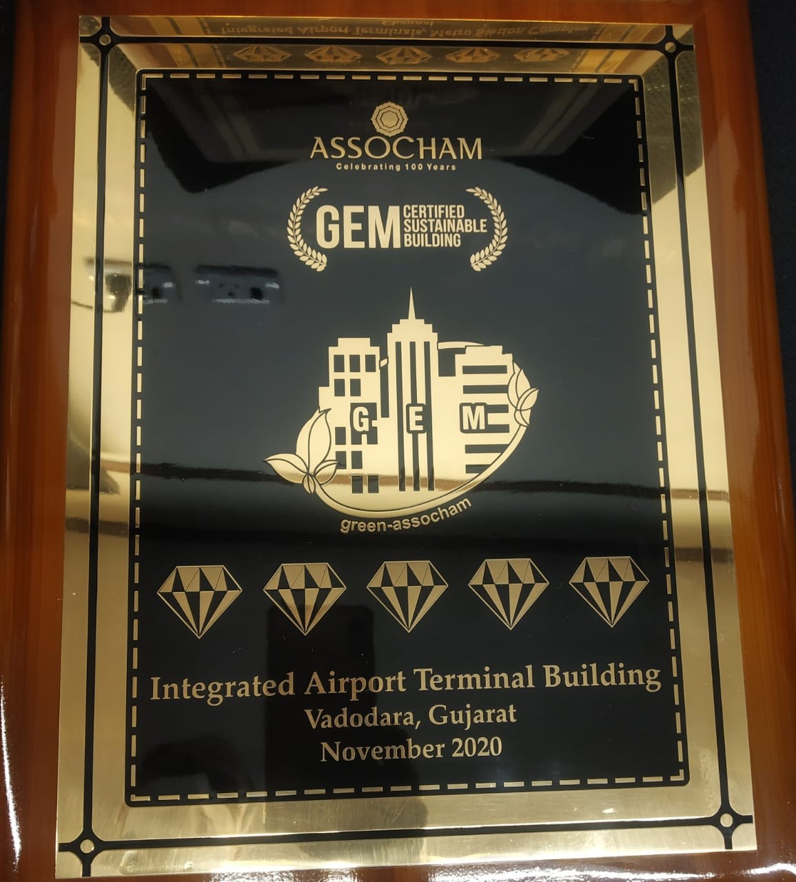 4 Vadodara Airport Integrated Terminal Building certified by the ASSOCHAM with CERTIFIED GEM 5 of GEM CERTIFIED SUSTAINABLE BUILDING in November,2020. -