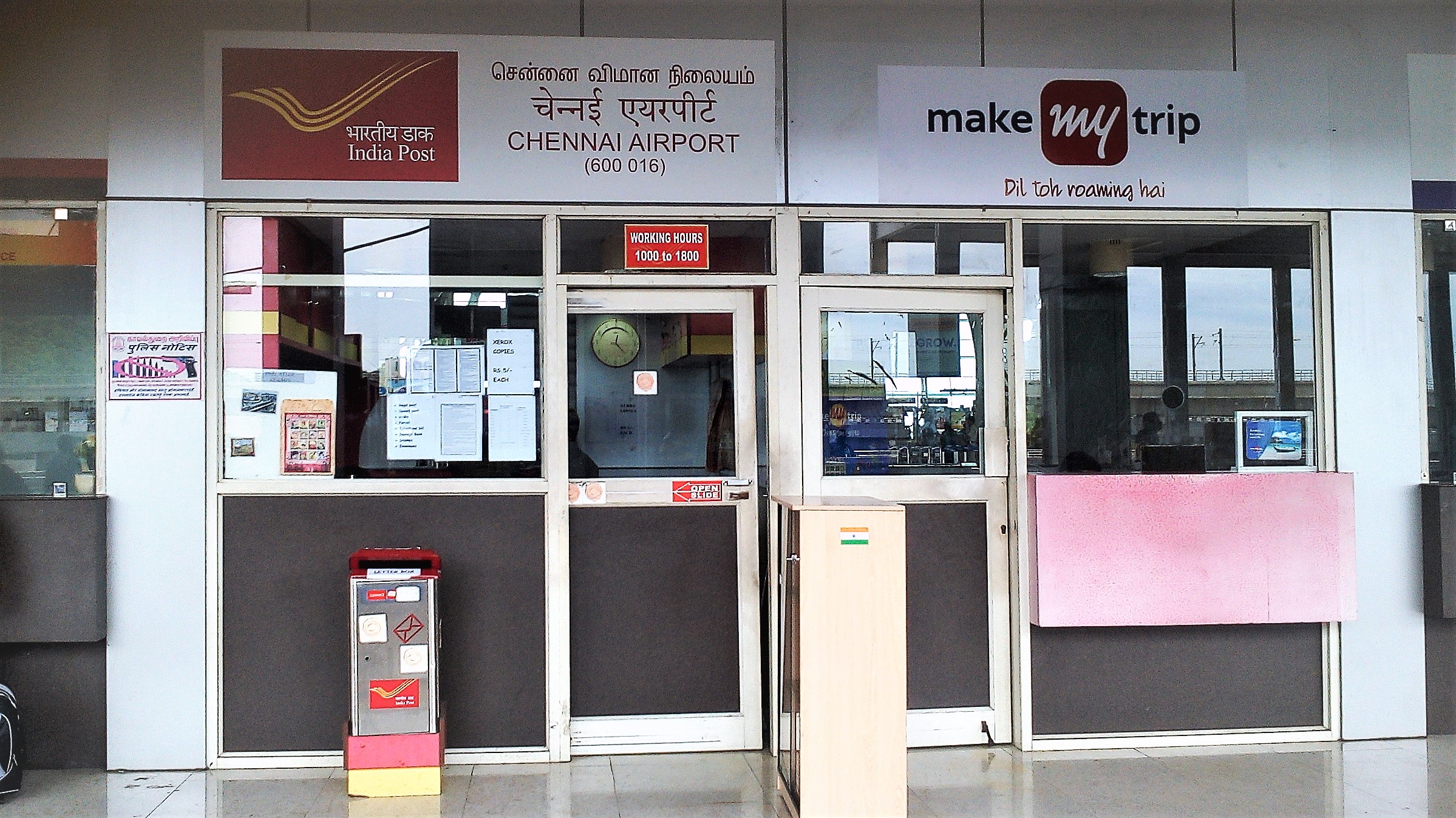 Both passengers & visitors can avail the facility of postal service at the Airport. Counter is conveniently located at Domestic Departure level. The postal services are available 10:00 hrs – 18:00 hrs from Monday to Saturday. The postal services remain unavailable on Sundays and Public Holidays. For any other details please contact 044 2256 2342.
